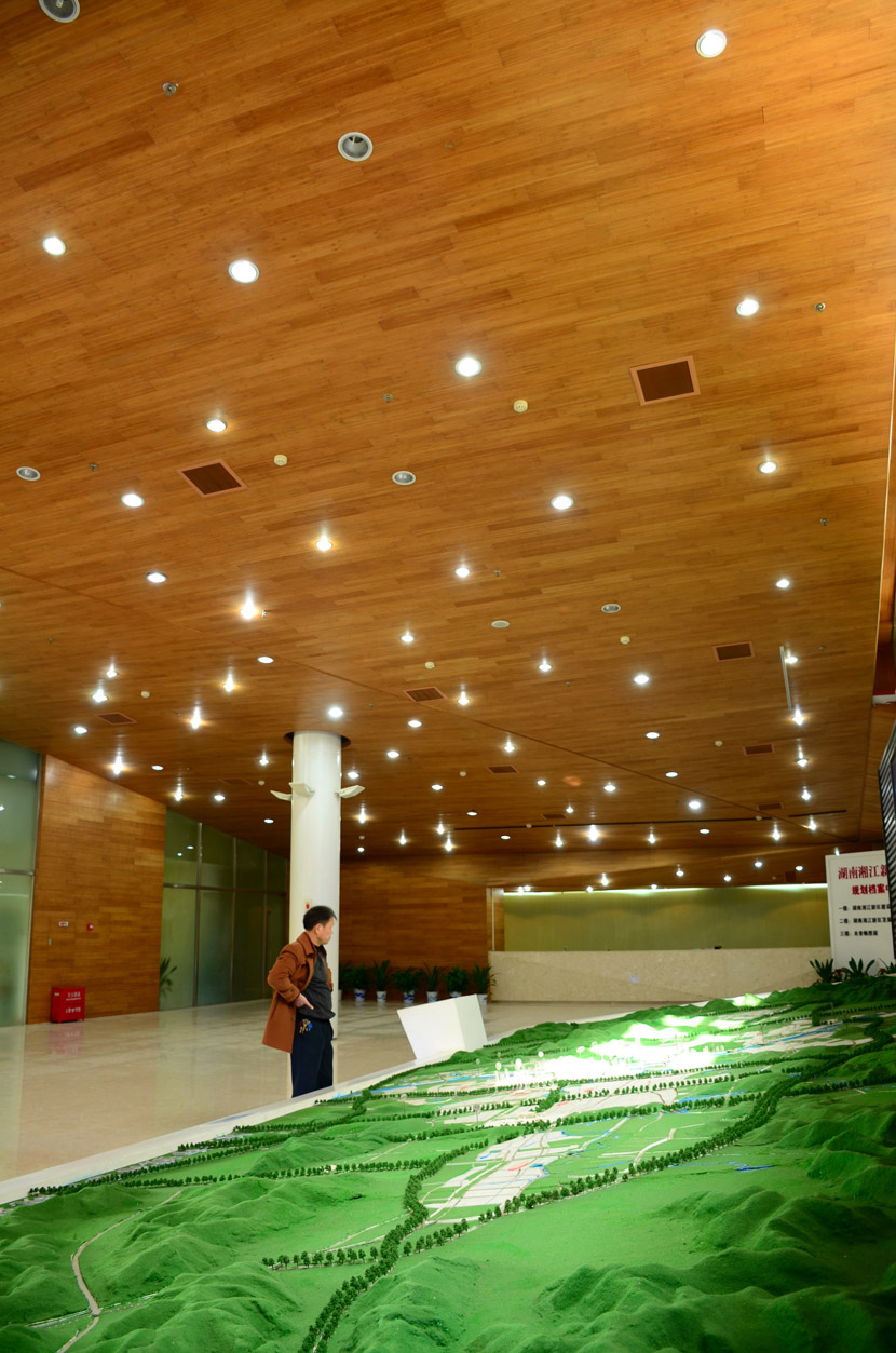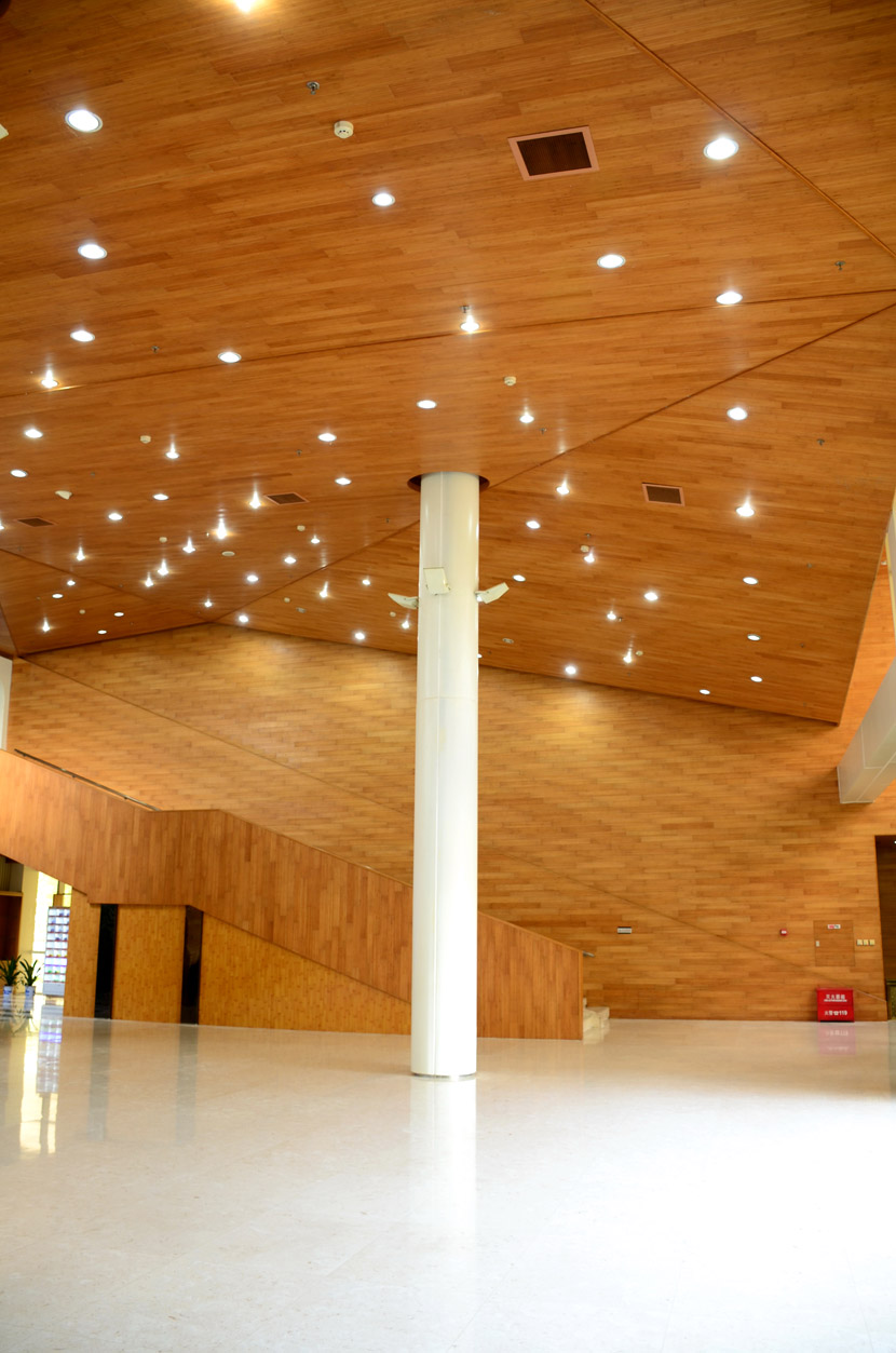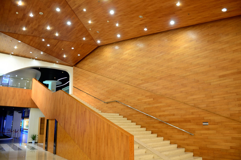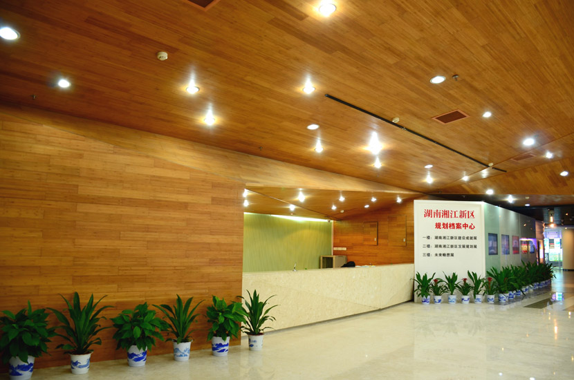 湖南湘江新區(qū)規(guī)劃展示館位于長(zhǎng)沙市瀟湘南大道383號(hào)(洋湖濕地公園東門對(duì)面),總建筑面積7000余平方米。展館成立于2011年6月,主要負(fù)責(zé)展示湖南湘江新區(qū)建設(shè)成就和發(fā)展規(guī)劃,是展示湖南湘江新區(qū)形象的重要窗口。展館大面積采用桃花江室內(nèi)竹材進(jìn)行裝飾,設(shè)計(jì)師運(yùn)用質(zhì)樸的天然竹材烘托出展館的綠色建筑理念和湖湘文化底蘊(yùn),使得展館更具品位。館內(nèi)竹材裝飾歷經(jīng)5年仍然保持良好狀態(tài),沒(méi)有任何發(fā)霉、變形和開裂現(xiàn)象,有力證明了桃花江室內(nèi)裝飾竹材的高品質(zhì)。