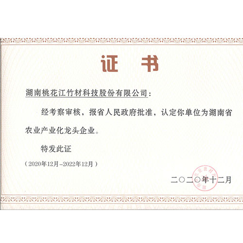 桃花江竹材多次榮獲“湖南省農業(yè)產業(yè)化龍頭企業(yè)”稱號