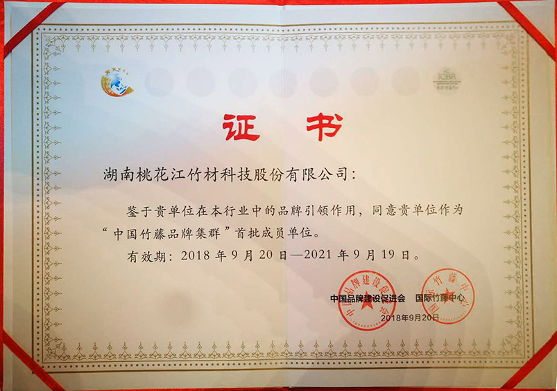 9月20日,"首屆中國集群品牌論壇"在京成功舉行。本次論壇發(fā)布的37個(gè)中國竹藤品牌中桃花江竹材科技位列其中,桃花江品牌成功入選"中國竹藤品牌集群"。